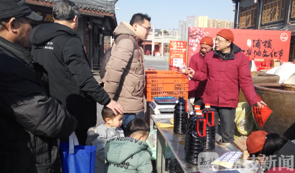 2019年1月20日上午,江苏淮安文庙正在进行一年一度打酱油盛会,现场“打酱油,过大年”把28口百年老缸酿造的头炮酱油带到文庙,让大家看得见、尝得到、买得起。