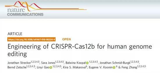 今日,CRISPR-Cas基因编辑系统的先驱之一张锋教授在《自然》子刊《Nature Communications》发布一项重要进展,报告了第三个可以编辑人类细胞基因组的CRISPR-Cas系统:CRISPR-Cas12b。