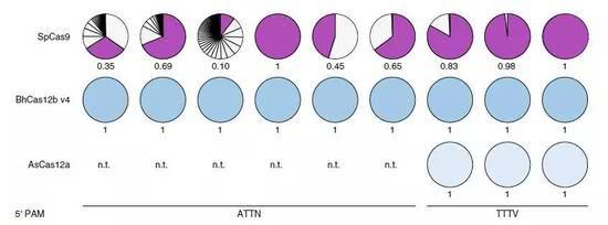 除了有效性,特异性对于一款强大的基因组编辑工具来说也非常重要。这一点,研究团队也在人类细胞中利用GUIDE-seq技术对全基因组范围内的脱靶效应进行了检测。结果表明,相比常用的Cas9,Cas12b导致的错误插入缺失都要少得多,脱靶性显著降低。