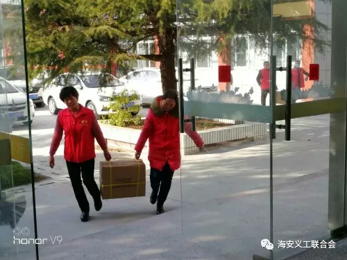 这回往楼上搬,男同胞们占据了“主战场”,可女同胞们照样不甘落后,这一个个都是“风一样的女汉子”。