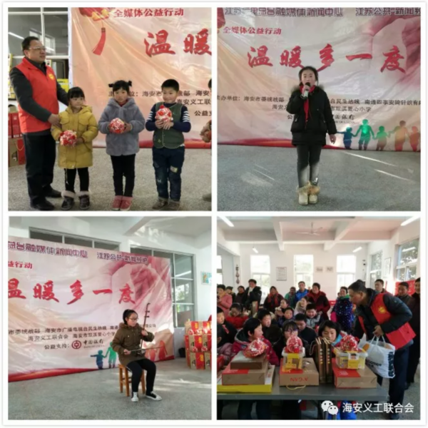 省广电总台,海安电视台民生热线,海安义工联都分别给孩子们送上了新春的礼物,一声声“谢谢”让这个冬日的午后充满着温馨祥和的氛围,温暖,又岂止是多了一度!