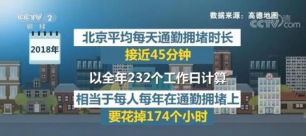 高德地图数据显示,2018年度北京平均每天通勤拥堵时长接近45分钟,以全年232个工作日计算,相当于每人每年在通勤拥堵上要花掉174个小时,所以有网友开玩笑,一个人是不是真的爱北京,让他挤一次早高峰地铁就知道了。