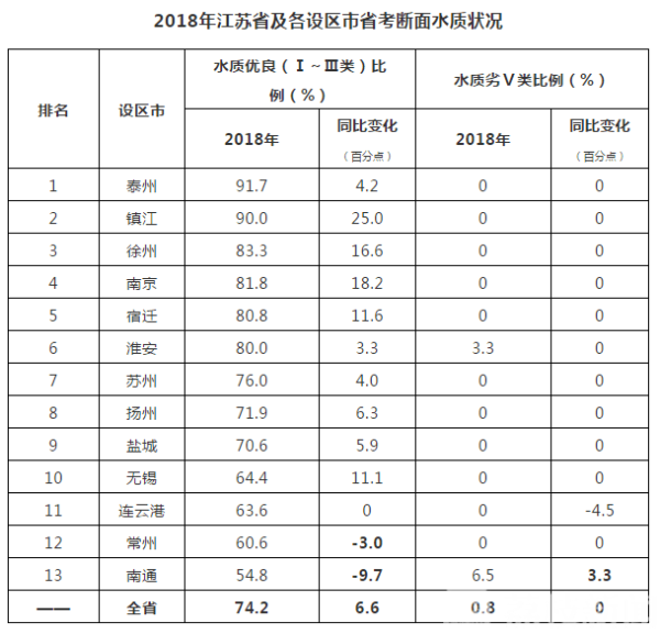 江苏省生态环境厅今天(1月23日)向社会通报了2018年全省地表水环境状况。