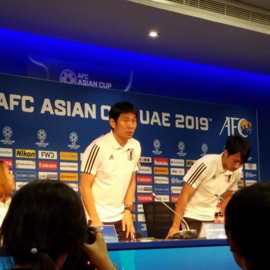当天森保一携防守型中场柴崎岳现身阿勒-马克霍姆体育场新闻发布厅。有英国记者问,在各种预测榜上,日本队是本届亚洲杯夺冠热门,明天对阵越南队的比赛亦是如此——对此,你有自信击败越南吗?