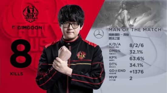 28分钟,双方大龙坑爆发团战,打出一波二换二。随后酒桶出现失误被秒杀,FPX果断开团,卡莎拿下三杀并收下大龙。31分钟,FPX推掉对方中路高地。随后,FPX下路一波零换四,一波拿下比赛。