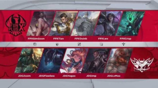 蓝色方:FPX 红色方:JDG