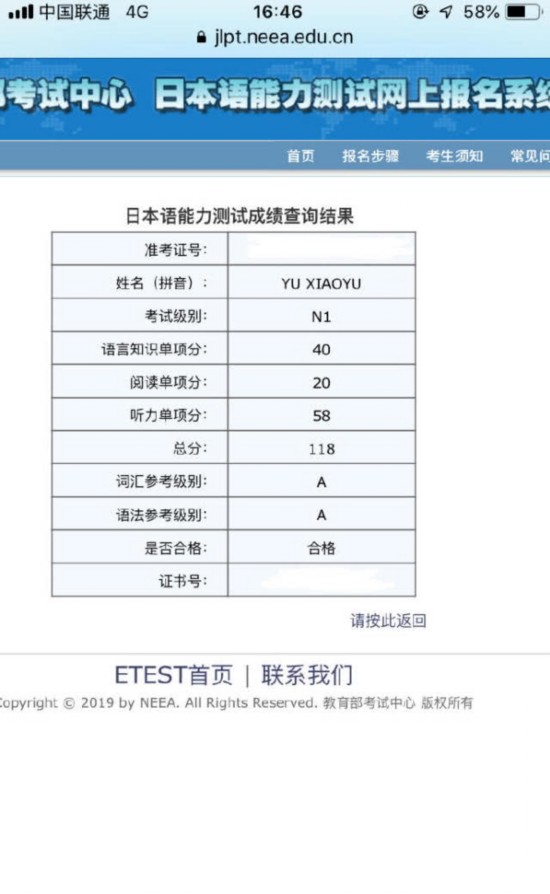 今天,于小雨的日语考试成绩放榜,正如运动员在赛场一样,一份耕耘一份收获。于小雨成功的通过了考试,“心里的大石头在今天可算落地了,需要反省的地方还有很多,但在短短的时间从不会读到能看懂就有勇气挑战N1我也真是拼了。阅读到最后都没有审题的时间了,还好超过及格线,剩下的全靠听力给救回来了。不管怎么说最重要的是N1考试我过啦,我过啦,过啦。”于小雨兴奋的表示。
