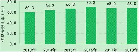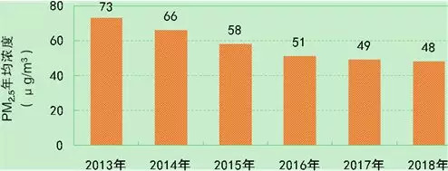 2018年,全省环境空气质量总体有所改善,PM2.5年均浓度为48微克/立方米,连续6年持续下降,达到国家年度考核目标;空气质量优良天数比率为68.0%。
