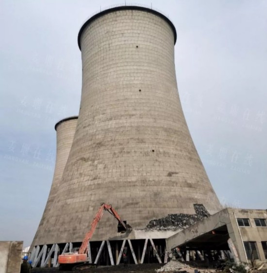 这两栋冷却塔是开发区化工园区的象征与标志性建筑,也是化工园区拆除过程中的一个重要环节。为贯彻落实中央环保督查组和江苏省“263”专项行动小组的决策部署,姜堰区政府成立了化工企业关闭搬迁及转型升级工作领导小组及6个工作组,由区长及副区长牵头。2018年6月21日,化工企业关闭搬迁正式启动,所有的化工企业于2018年11月13日正式签约结束,从第一份协议到最后一份协议签约,前后用了不足2个月的时间。目前润泰、齐大、化肥厂都已进入拆除阶段,齐大已经进入扫尾阶段,润泰、化肥厂及其它化工企业也将加快推进,拆除拆卸结束后还将进行土壤修复与功能调整。