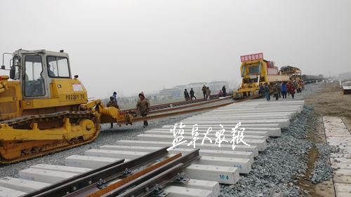 △盐徐铁路铺轨机进入建湖县境内铺轨。(资料图)