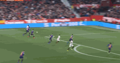 巴萨最尴尬瞬间甚至还不是丢球,而是35分钟本耶德尔左翼趟球入禁区,突然急停扣球闪过滑铲的皮克,随后再左右脚交叉拨球,又晃过塞尔吉-罗贝托与阿图尔,尽管其最后兜射远角偏出,可巴萨4名球员前后夹击,都没拦下主队头号前锋。本耶德尔虽也是矮小灵活型前锋,可也非纳瓦斯与萨拉维亚这样过人突击能力极强的球员,巴萨却让对手上演禁区内1过3好戏,这可是此役轮休的梅西所擅长的绝技。