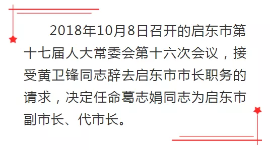 今天(1月24日),启东市第十七届人民代表大会第三次会议,选举葛志娟同志为启东市人民政府市长。