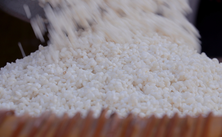 用传统方式打糍粑是个力气活,更是技术活。刘国富告诉记者,从雪白的糯米到香喷喷的糍粑,要经过浸泡、蒸煮、捶打等数个环节。用来打糍粑的糯米要提前浸泡一天以上,待糯米胀酥后捞到箩筐里,再用清水冲洗干净淘掉浊水沥干。等到锅里的水烧开后,将糯米倒入铁锅上热气腾腾的木甑内蒸煮,蒸熟的糯米倒入舂臼才能开打。