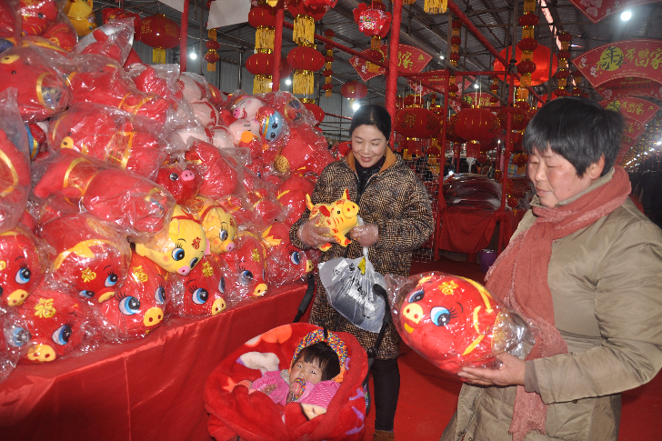 2019年1月22日,灌南县居民正在第三届新春大集上选购年货。