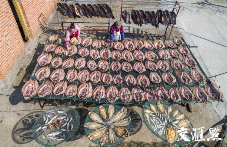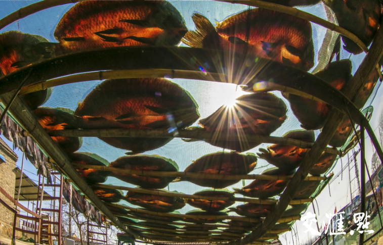 2019年1月20日,泗洪县龙集镇尚咀村腊味腌制工作进入高潮,家家户户都在抓住晴好天气晾晒腊鱼。尚咀村位于洪泽湖西岸,主要以渔类捕涝为生。近年来该村发挥本地优势,选准腌制腊鱼这一脱贫项目,从而走向了富裕路。张连华 摄 视觉江苏网供图