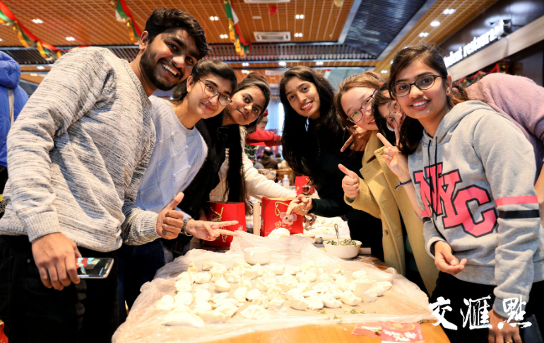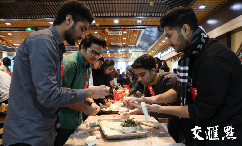 2019年1月20日,镇江,江苏大学举办迎新春留学生包饺子大赛,来自印度、加纳、巴基斯坦、俄罗斯等国家的100余名寒假留校的“洋学生”在比赛中和面、擀皮、包饺子,迎接新春,感受中国年味。杨雨 摄 视觉江苏网供图