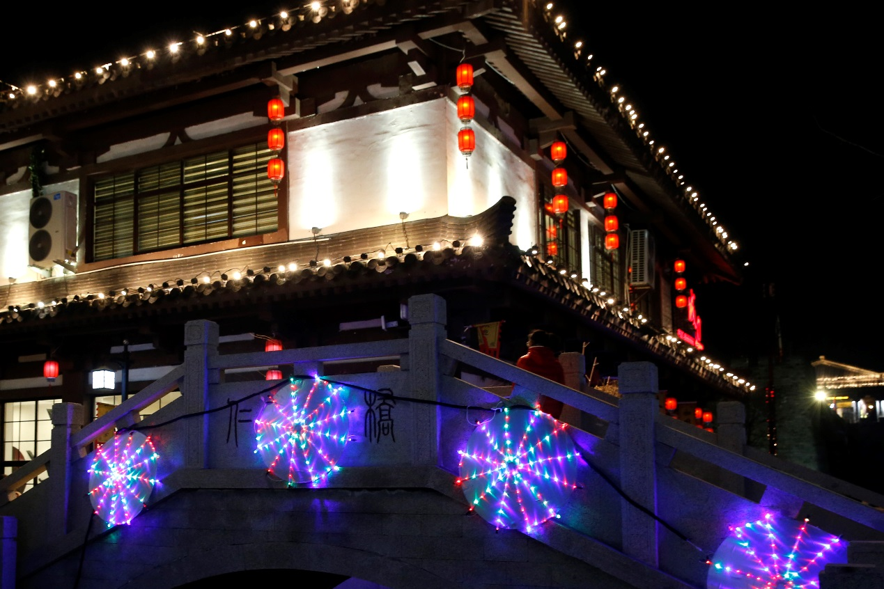 2019年1月20日,泗洪县城区古徐阁内流光溢彩,多种灯具造型与建筑相映成趣,将古徐阁装扮一新。据介绍,泗洪县城区古徐阁近日安装了20余组“季子挂剑”、“仁义礼智信”、“金猪送福、”“双龙戏珠”等大型灯展引来众多市民免费观看,增添“年味”迎接新年到来。