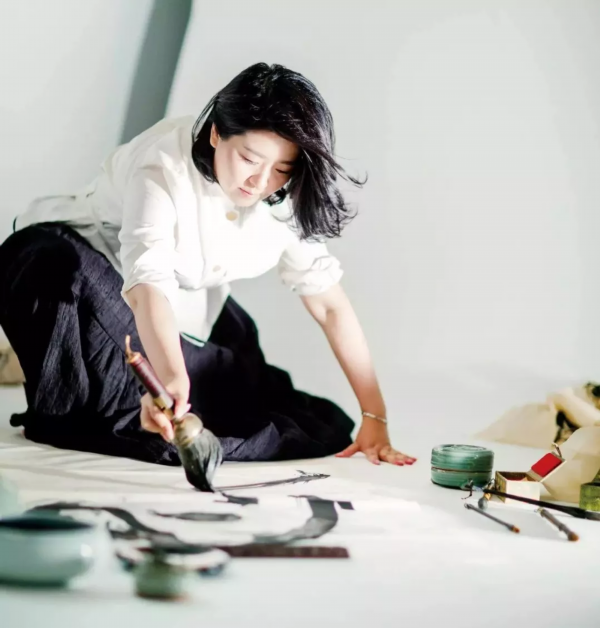 她为张艺谋题写了《幸福时光》,并在《英雄》中担任梁朝伟的书法老师及书法替身。影片中那幅挂在秦王殿堂上巨大的篆书“剑”字,正是出自这位江南女子之手。