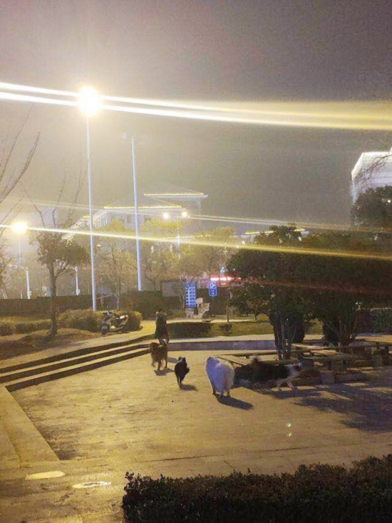 22日晚上8点半左右,记者来到了邗江市民广场。虽然天气有点冷,但仍然有十几名散步人。在草坪上聚集有好几人遛狗,狗确实都没有系狗绳。