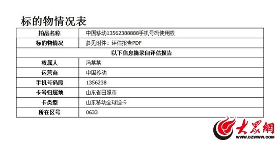 22日上午,海报新闻记者联系到东港区人民法院,确定了此事的真实性和有效性。刘法官介绍,他们在对被执行人进行调查时,发现其135开头,尾号“88888”的手机号比较稀缺,便决定进行依法拍卖。拍卖所得将用以偿还被执行人的欠款。