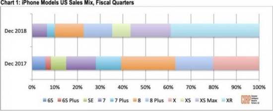 来自CIRP的最新报告显示,在刚刚过去的2018假日季中 iPhone XR 是美国最畅销的iPhone机型。销量占比约为39%,超过iPhone XS和XS Max加起来的26%,而iPhone XR是季度中期才上市发售。 这一数据与苹果的说法吻合,该公司一直在强调iPhone XR自发布后每周都是苹果的销量冠军,虽然从未给出具体数据。