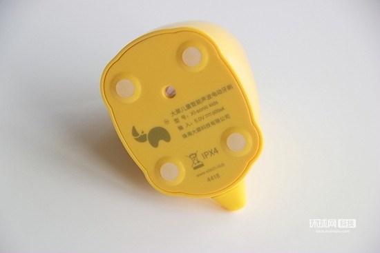 大犀儿童智能声波电动牙刷的机身尺寸为215mm*55mm。其整体设计风格很简洁,且萌趣十足的卡通造型,符合小孩子的喜好。