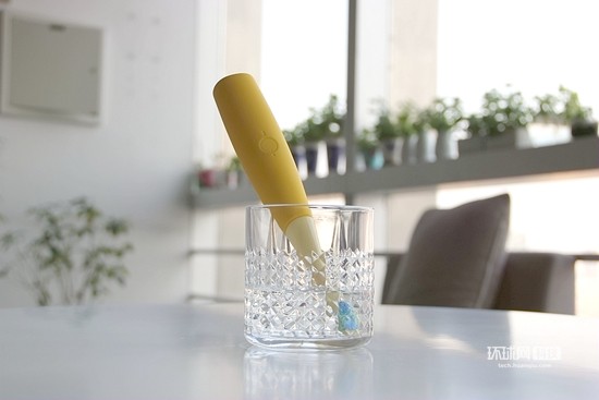 使用的时候,我们只需将刷头套入牙刷轴。然后长按三秒机身上的开关按钮,等到光圈闪动便表明牙刷已经被唤醒。