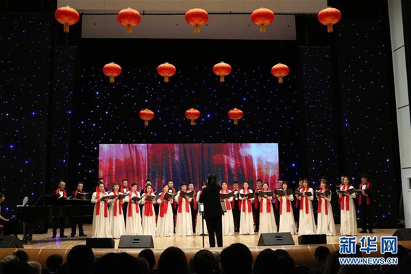 1月23日,在白俄罗斯首都明斯克,中国中央歌剧院的艺术家们在“欢乐春节”歌舞晚会上演唱。新华社记者 魏忠杰 摄