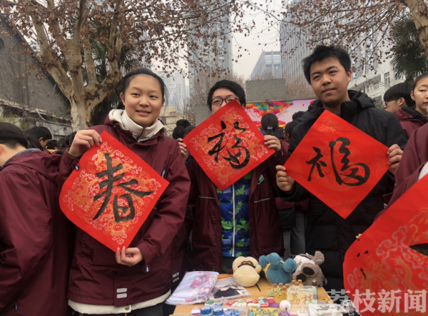 每个班级的爱心小铺前都被围得水泄不通,操场上更是人声鼎沸,爱意充满了整个校园。小“推销员”们的吆喝声不绝于耳,“售货员”们也忙得不亦乐乎。为了吸引“顾客”们的注意,同学们有的唱歌、有的跳舞,动漫中的角色扮演也纷纷都倾巢而出,在操场上尽情展现不同的魅力。此外,本次义卖的形式也丰富多彩,有的同学现场写书法卖“春联”,有的同学现场制作精美的手工艺品,还有的班级“吉他弹唱”,这种别出心裁的“推销”方式,吸引了不少同学们的眼球。