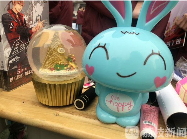 高二(7)班物化班的众多义卖品中,“黄金雨”最为抢眼。学生说这是他们高一年级做化学实验偶然中发现碘化钾和硝酸铅融合在一起可以产生特殊的反应。于是义卖前夜几位同学制作了十瓶,现场只要晃动几下瓶子里就下起“黄金雨”。“ 我们将课内知识碘化钾和硝酸铅混合制作的碘化铅沉淀,因为是颗粒状很好看,只要3块钱,我们将课内知识与工艺品结合出来的一个成果。 原料是淘宝上买的。”