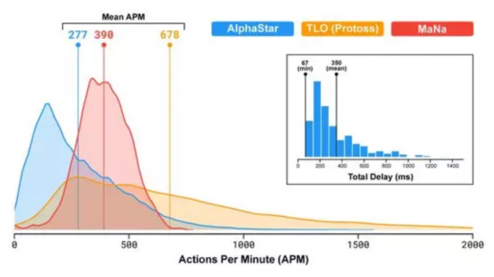 AlphaStar在APM和延迟方面与人类玩家的比较(图片来源:DeepMind博客)