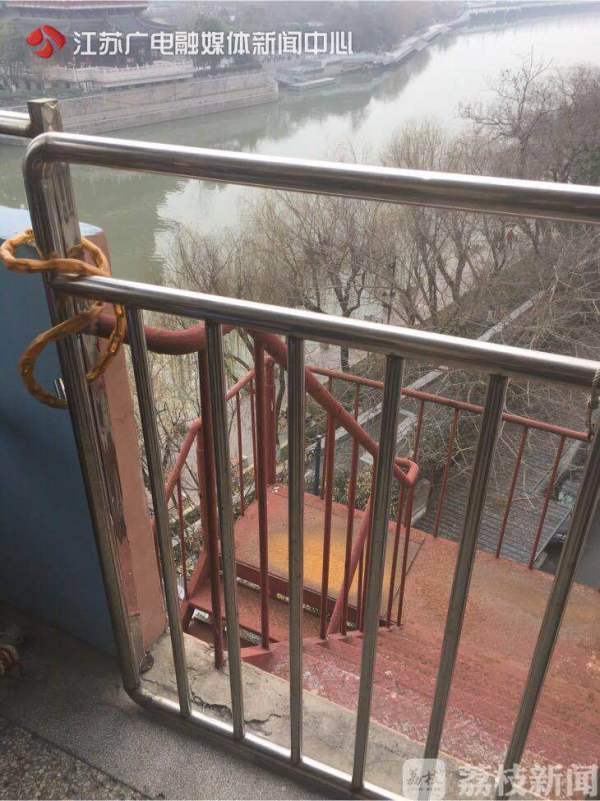 在南京建邺区长虹路的这家老年公寓,消防检查人员发现,楼梯间虽然有自然通风的窗户,但是窗户外面却被加了一道门。