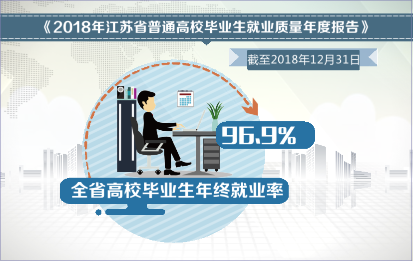 2018年江苏高校毕业生就业质量稳中有升,实现初次就业率连续12年超过80%,年终就业率连续14年维持在95%左右。毕业生就业的适配性、稳定性、公平性等就业质量核心指标连续3年稳步提升。
