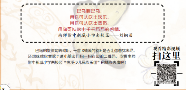 “比如琴棋书画篇介绍了民族乐器巴乌,而巴乌是我们学校的特色课程,扫一扫二维码就能链接到我们编写的巴乌教程,还能听到我们学生用巴乌演奏的音频。”副校长叶微介绍。