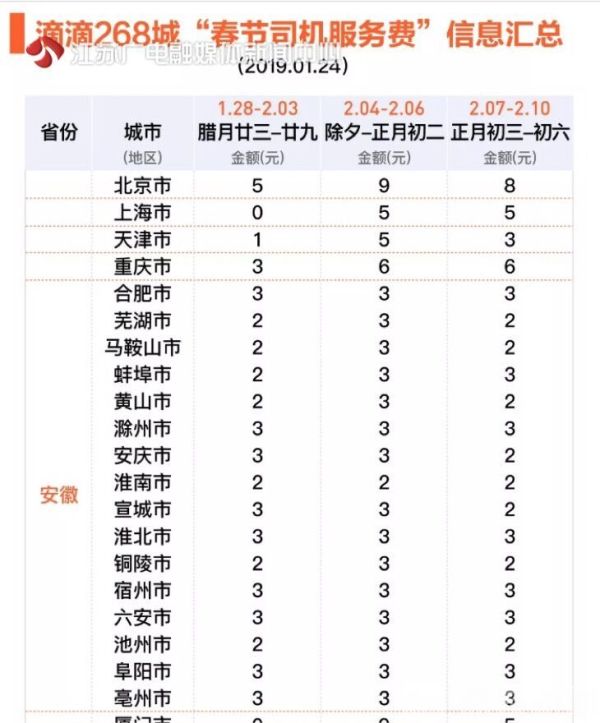 其中,从2月4日到10日,我省南京、徐州、镇江、宿迁等城市的乘客每次叫"滴滴"要额外支付2元的服务费;而在1月28日至2月10日期间,苏州、无锡、盐城、连云港、淮安、宿迁等地的乘客要分时段支付2到5元不等的服务费。