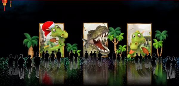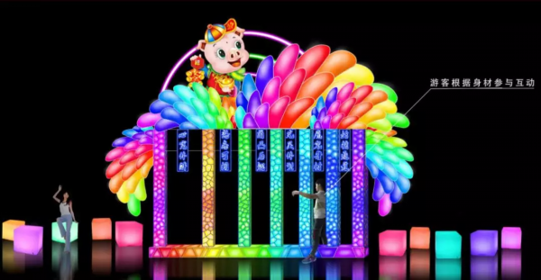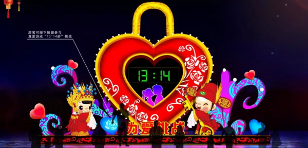 也有互动性十足的“为爱挑战、秀出你的身材、恐龙乐园”等新作品灯组。