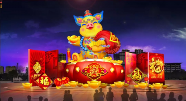 既有展示传统习俗的“鱼跃龙门、金猪纳福、万福到家、永结连理”……
