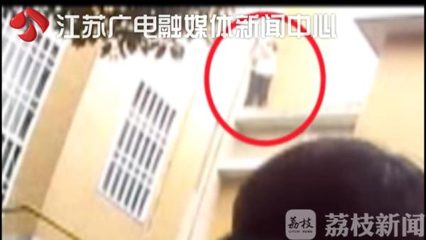 当天,警方接到报警,在丹阳市后巷滨江新城小区,有一名女孩被困在了10米高的平台上。民警赶到现场,发现女孩站在一栋居民楼4楼至5楼之间的平台上,抓着燃气管道,一动也不敢动。楼下被困女孩的一位同学正焦急地守候。
