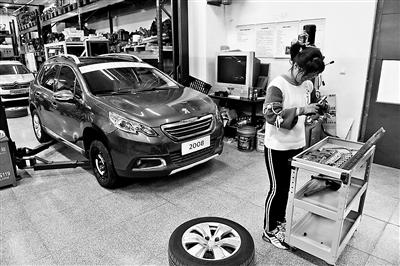 只见汽车系的一间教室里摆着4辆小汽车,每辆车旁边提供一堆工具,4名同学正在埋头苦干。其中一名瘦小的女生已经拆完轮胎,正满脸通红地双臂怀抱轮胎想把它端下来,一旁的考官见状赶紧上去帮忙。“只要她会操作,我们不需要她有力气——事实上我们专业经常是女生干得更好。”考官告诉北青报记者。