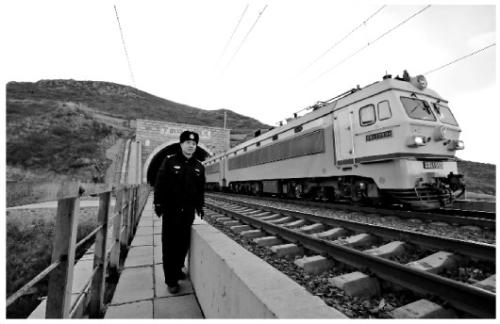 56岁的老民警朱效国已经有些驼背了,但精神状态很好。他介绍,下纳岭特大桥全长3.8公里,桥离地面高度约50米,恐高的人可巡不完线路。冬季天冷倒不怕,就怕刮风,桥太高了,很危险。只要不刮风就是好天气。我们巡线的目的就是,一是看线路上的设备有没有损坏的,另一个就是看看有没有危害火车安全的,有没有山上滚下的落石和其他杂物,以保障列车通行安全。