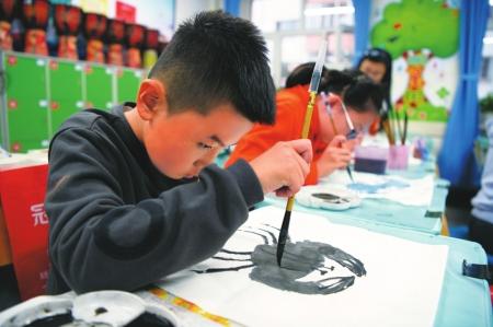 小学生在校内课后服务课堂上练习绘画。新华社发