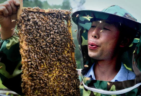 席海水曾是河南省栾川县潭头镇大坪村的建档立卡贫困户。2017年初,他加入当地一家种养殖合作社,免费得到6箱黑岩蜂,还接受了技术培训和上门指导,慢慢摸索到养蜂的门道。这份“甜蜜”的事业,成为席海水成功脱贫的重要支撑。