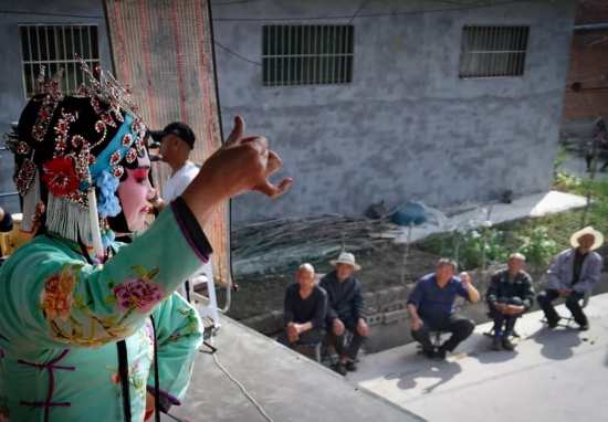 河南焦作市博爱县豫剧团的演员根据双庙村群众的文化订单需求,为该村群众表演。