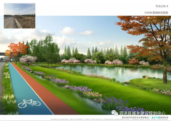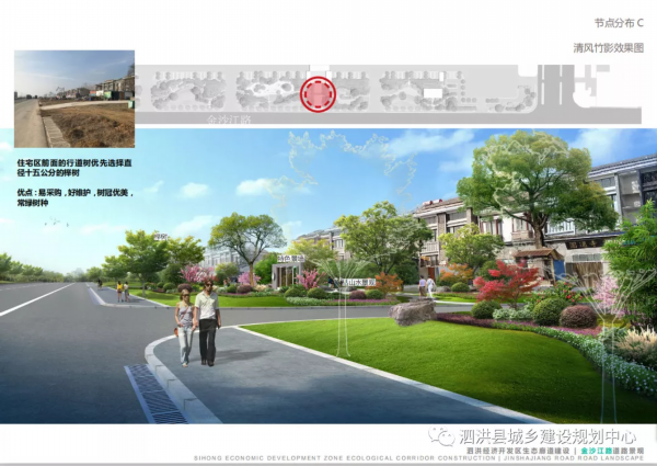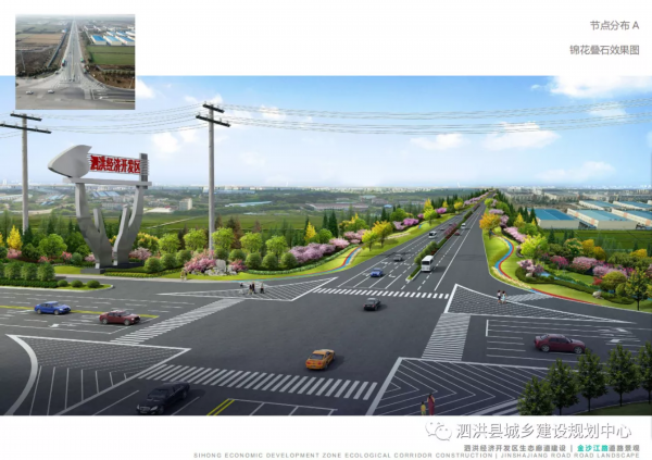 金沙江路是泗洪北部的环城快速通道,是连接开发区、重岗街道和大楼街道的交通纽带,重要的城市形象展示界面。本次路段设计为G235至黄山北路两侧绿地,全长约7.5公里。规划着重从栽植方式和功能分区方面与周边环境自然衔接,美化环境,增加交通安全性和道路沿线观赏性。