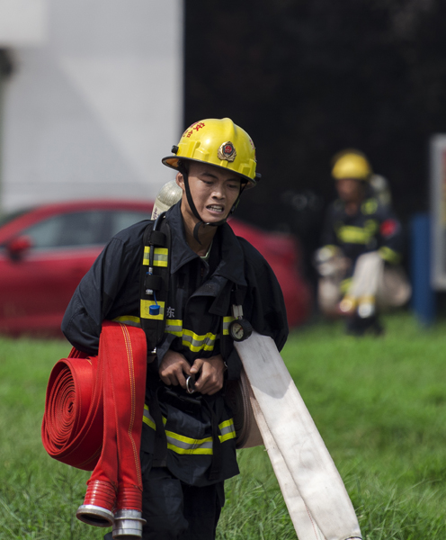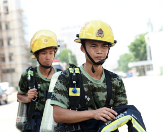 时间一分一秒过去,现场烟雾越来越浓,有毒气体越来越多,从观察口不断溢出,将孟鸣之和李晓俊完全笼罩起来。气温越来越低,孟鸣之却全身滚烫,瘦小的身影在弥漫着烟雾和毒气的空间里忽隐忽现,他硬是在这样的环境里战斗了2个多小时。突然,孟鸣之听到空气呼吸器传来“嘀嘀嘀”的报警声。“晓俊,我的空呼没气了,马上给我换一个。”孟鸣之一边说,一边抱紧水枪,小心地移动身体,在最佳位置继续打击火点。话音刚落,他脚下一滑,从烘干机顶部滑落下来,掉入烘干机内部。