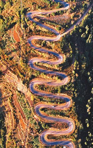云南宜良县六十八道弯扶贫公路旁,植被丰茂,郁郁葱葱。本报记者 雷 声摄
