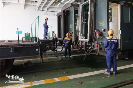 火车从粤海铁路北港码头上船,再从南港码头下船。