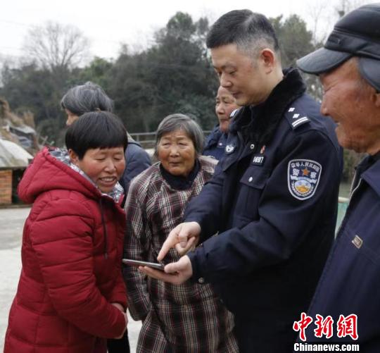 民警为杨通美展示贵州老家的视频资料 海盐警方供图