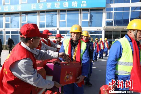 中新网北京1月28日电 中建三局28日在其北京公司城市副中心项目举行活动,“欢送”为城市副中心辛苦建设辛苦了一整年的农民工返乡。