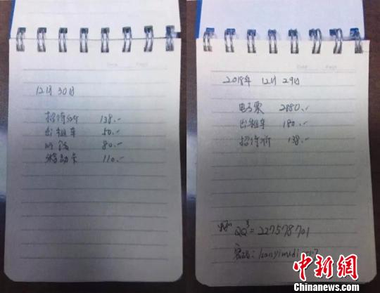 图为嫌疑人金某详细记录的各项开销。海宁警方供图